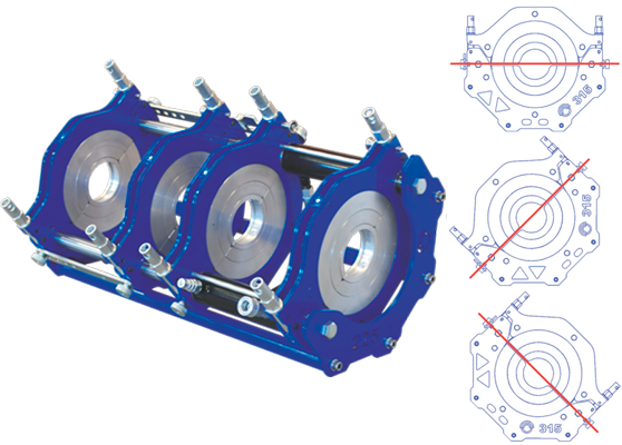 – Запатентованная конструкция рамы, позволяющая работать в трёх положениях наклона к горизонту без дополнительной переналадки. – Технологичная рама, устойчивая к кручению и изгибу. – Возможность работы по схеме 2+2 (два подвижных и два неподвижных хомута) и по схеме 3+1 для сварки фитингов, отводов, Y-образных отводов, тройников, крестовин, соединив 2 и 3 хомут при помощи перекидной планки. – Затяжка гаек откидных винтов вручную, накидным или рожковым ключом, прутком монтажки. – Редукционные вкладыши для крепления труб меньшего диаметра. – Площадь сечения поршня гидроцилиндра позволяет развивать усилие необходимое для сварки полиэтиленовых труб с SDR от 41 до 6. – Центратор оборудован механизмом отрывателя, позволяющим отводить прилипшее зеркало нагревательного элемента от торца трубы. |